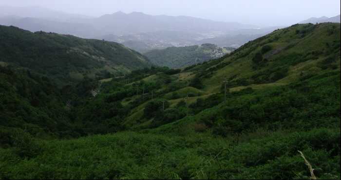 forest on the slopes of Leco and a thick clump of tall ferns, brambles,